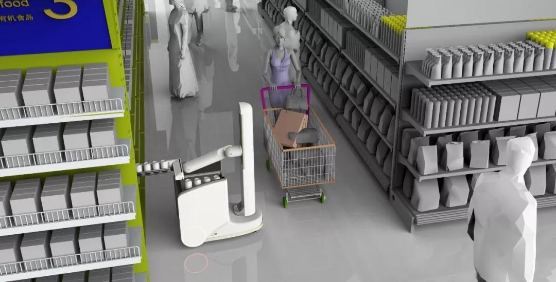 随着全球范围内人工成本的不断上升及智能支付技术的发展,无人零售逐渐成为全球零售业创新升级的新方向。机器人采用电子射频识别标签技术盘点超市货品详细信息归纳到超市工作的服务系统,采用机器视觉,深度学习算法,传感器融合技术有效的处理人为举动和理货员的工作习惯,联动的机械结构不仅解决了资源的浪费,同时极大提高机器人的工作效率。通过对功能模块的合理整合与空间布局,将机器人外观造型与功能紧密衔接,兼顾超市货架与理货员的人机尺寸,增加机器人使用场景的多元化。机器人主体设计与智能配件设计相互依托,利用电子射频识别标签技术盘点超市货品详细信息归纳到超市工作的服务系统,造型采用形体渐变功能引导的设计方法,通过线性符号、跑道圆的简易形态增强产品的设计亲和力与专业性。整体材质以安全柔和的pp材质为主,辅以软性硅胶材料,材料表面采用细磨砂工艺,增强理货员或顾客接触时的舒适肤感体验。