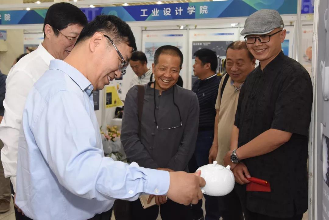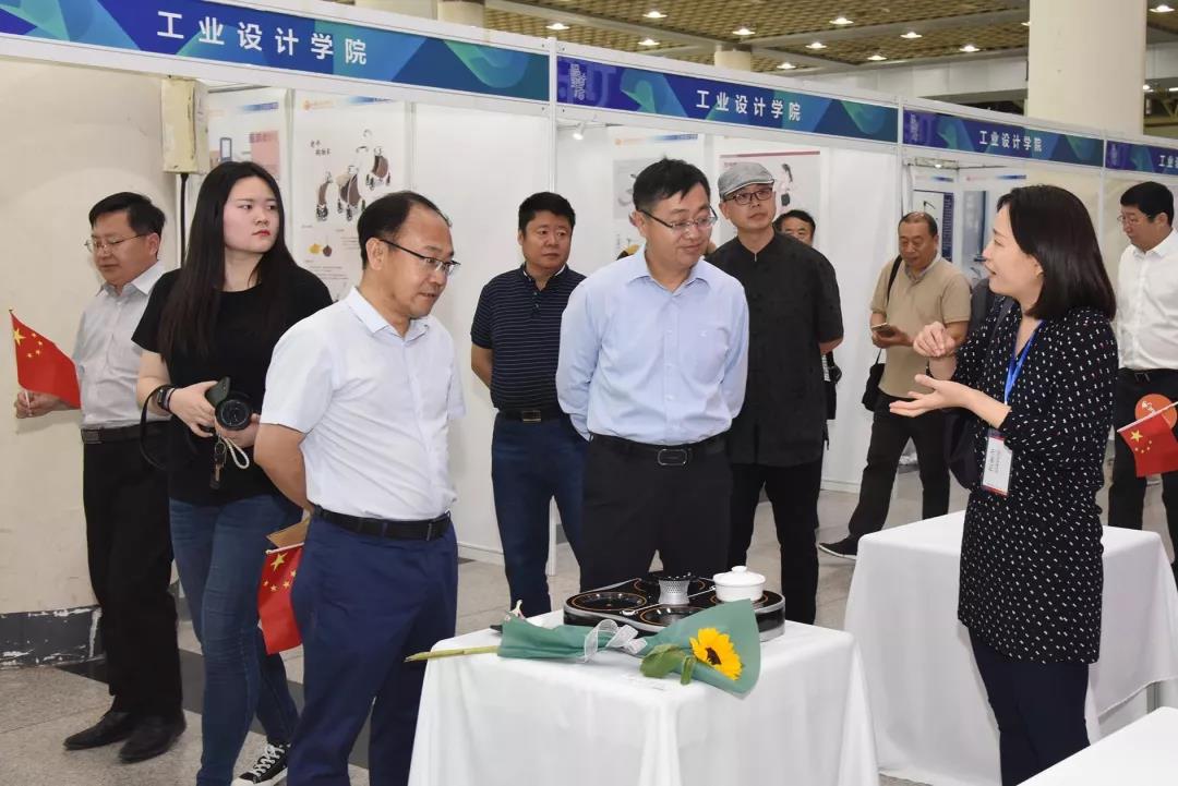 工业设计学院王君秋、胡晓雪老师对相关设计作品进行讲解汇报。关厅长一行对工业设计学院产品设计、公共设施、工业陶瓷、交通工具、艺术与科技、照明设计等相关展区进行了参观指导。