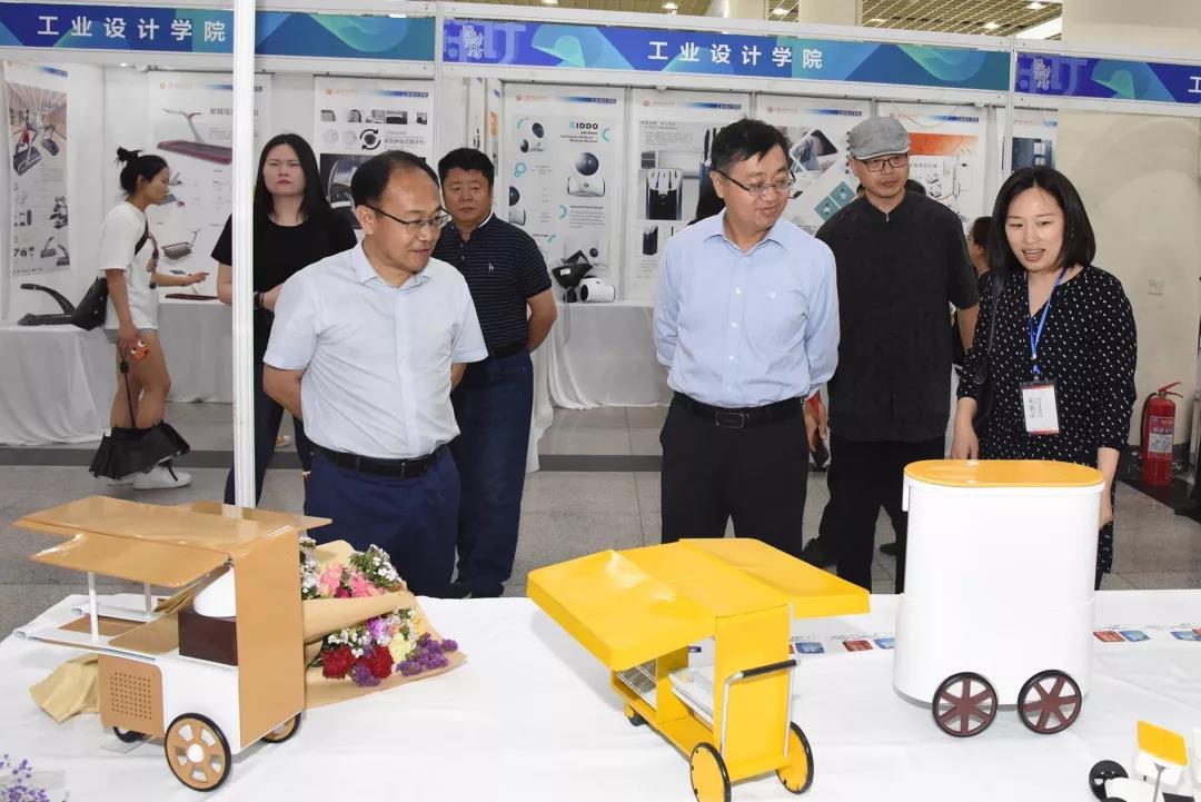 5月19日上午,山东省教育听副厅长关延平一行在2025新澳门免费原料大全副院长董占军的陪同下,来到工业设计学院展区参观指导。