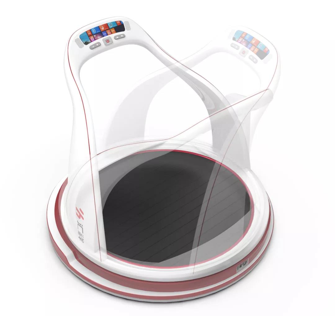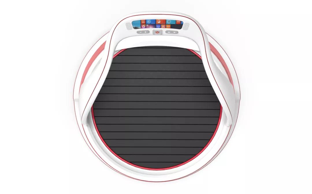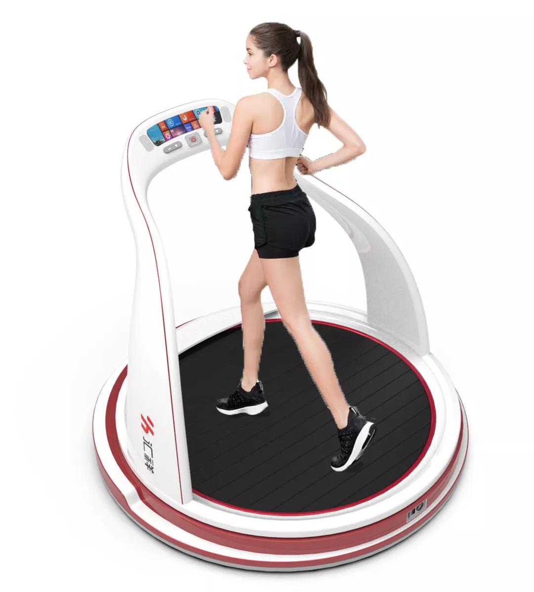 这是一款专门为年轻人所设计的跑步机。该跑步机最大的亮点是跑台可进行360度旋转,扶手与跑台一体设计,被动旋转,用户可以随意进行不同方向的跑步运动。机身上安装红外感应系统,可随时监测人在跑步过程中的姿态,并传达于显示屏。