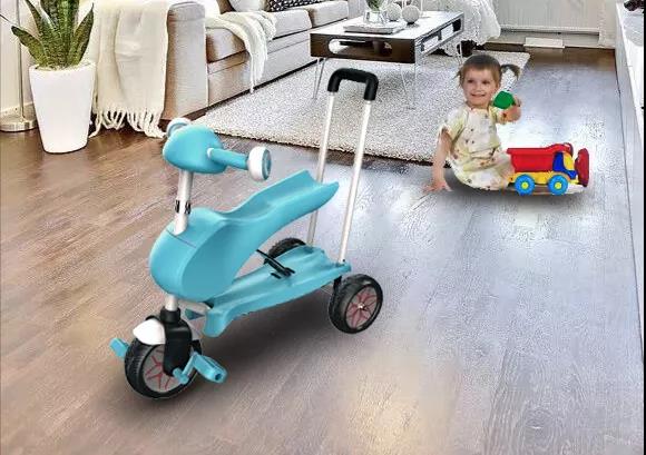 该设计以轻车快马为主题,核心功能主要以骑行车和滑板车功能为主,成人手推车、学步小推车功能为辅,四种模式可以任意切换。此款童车主要是针对5岁以下儿童使用,只需通过简单的拆装重组,可以使一辆玩具车拥有四种不同的玩法,实现一车多用。
