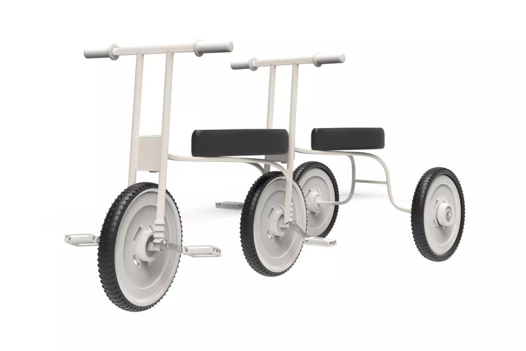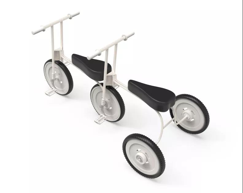 随着城市经济的快速发展,越来越多的人离开自己的家乡去大城市寻找工作机会。这就造成了现如今尤其是许多经济条件并不尽人意的偏远地区会出现越来越多的留守儿童。这些孩子由于从小缺少父母的陪伴,在成长道路上心理大多会非常的孤独和自闭。为了能让这些孩子心理更加健康,童年充满乐趣,也为了弥补这片被忽略的市场,设计一款适用于这些儿童的娱乐产品。乡村幼儿园双人脚踏车就此诞生。