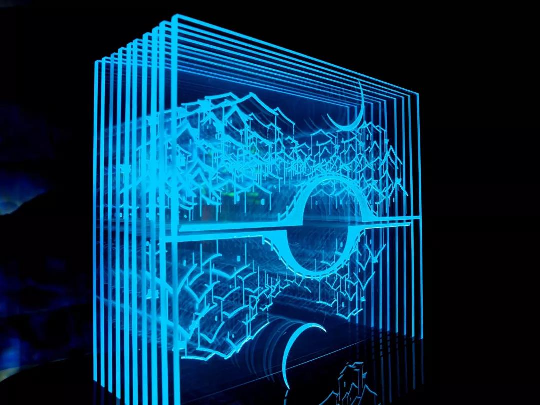 此外照明方向的学生们,用不同的观念和视角,展现他们对光的理解。有表达即将毕业的学子对母校不舍之情的“初见”作品,表现人们渴望与自然交流的“韵律”和“呼吸森林”作品,还有倡导保泉护泉的“涌泉”作品,将传统与现代相结合的“山光水色”作品,将家乡之美与灯具相结合的“影”,以及体现光的线条之美的“角”,将寄托人们各种情怀的月亮与灯光相结合的作品“月时”等等。魅力四射的照明设计展区,欢迎大家前来参观体验,展览时间为5月17日至5月20日。
