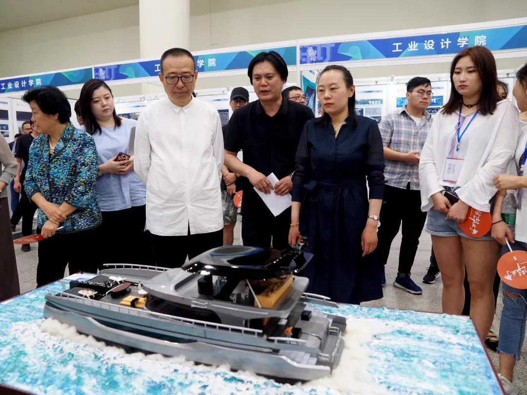 潘院长一行对工业设计学院精品展区、产品设计展区、公共设施展区、工业陶瓷展区、交通工具展区、艺术与科技展区及照明设计展区进行了参观指导。