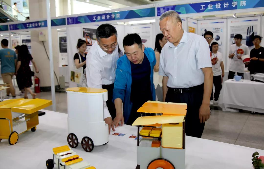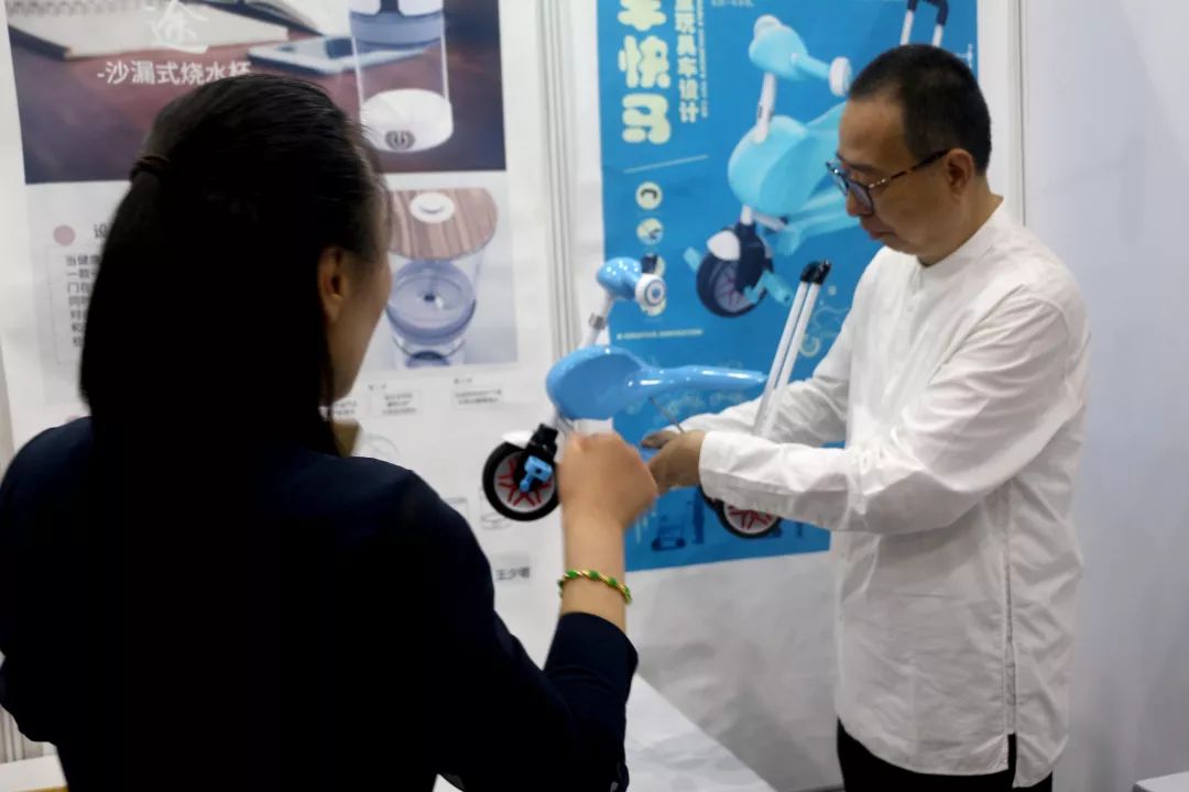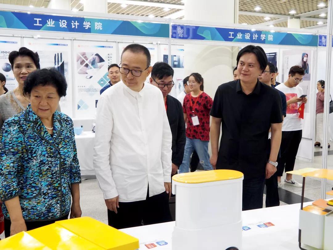工业设计学院张振羽书记、张焱副院长、产品教研室负责人王艳副教授、梁碧蓉老师和张蕾老师陪同参观并负责展区作品的讲解。