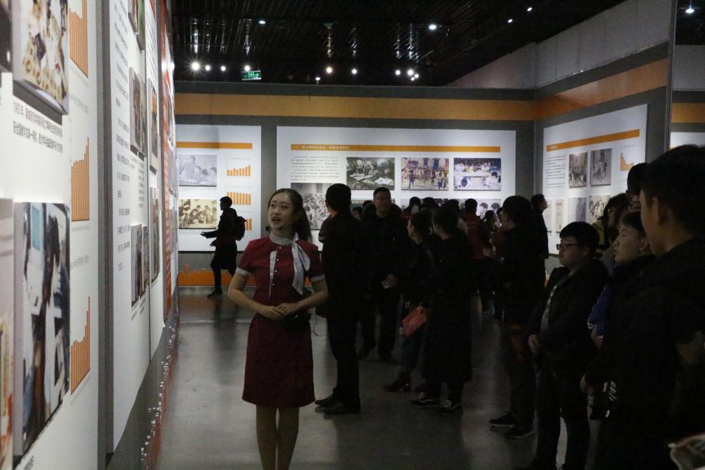 展览共分为六部分,以“壮阔东方潮,奋进新时代—山东教育改革开放40年”为主题,紧扣教育改革开放的历史纵深感、群众获得感、发展成就感,通过300多幅图片和相关文字,集中反映了40年来我省教育改革发展的辉煌历程,充分展现各个教育阶段的深刻变化,描绘出40年全省教育改革发展的动人画卷。参观的同学认真听取讲解员的讲解,通过观看图片和相关文字,全面了解山东教育改革的发展历程与历史脉络。
