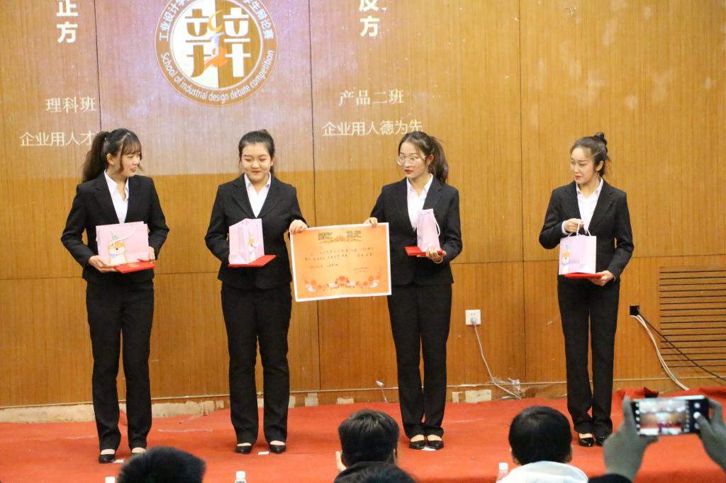 栗梅和主席团成员为冠军队伍2018级理科班、亚军队伍2018级产品二班、季军队伍2018级产品三班、最佳辩手和优秀教练颁发了奖状、证书和奖品。至此,工业设计学院第十七届大学生辩论赛圆满结束。