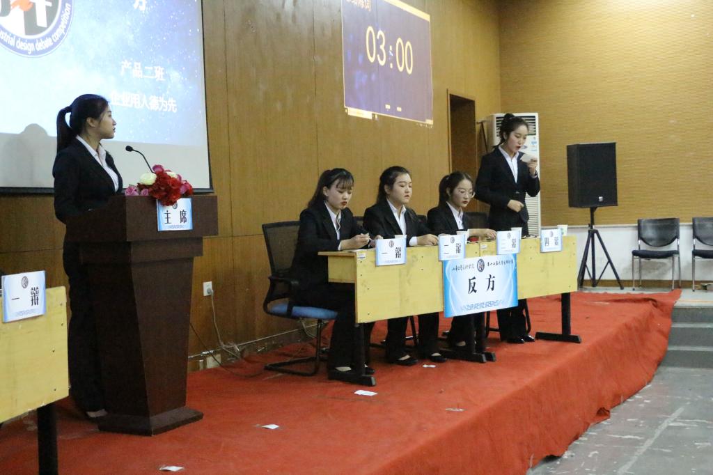 比赛伊始,由本场主席黄珊致开场词,宣读了比赛规则及注意事项。比赛分为立论陈词、公开辩论、攻辩小结、休场抽签、自由辩论、总结陈词六个环节。正方工业设计学院2018级理科班的辩题是“企业用人以才为先”,反方为工业设计学院2018级产品二班辩题是“企业用人以德为先”。从开篇立论到自由辩论环节,比赛的激烈气氛逐渐升级。正方辩手通过具体事例来论证自己的观点,反方也不甘示弱,旁征博引,从多方面进行巧妙的反驳。双方选手富有攻击力的提问,巧妙地回击,妙语连珠给在场的观众留下深刻的印象。经过评委们紧张激烈的评审,最终工业设计学院理科班获得了本场比赛的胜利,反方四辩获得“最佳辩手”的称号。点评嘉宾陆成龙对比赛进行了精彩独到的点评。