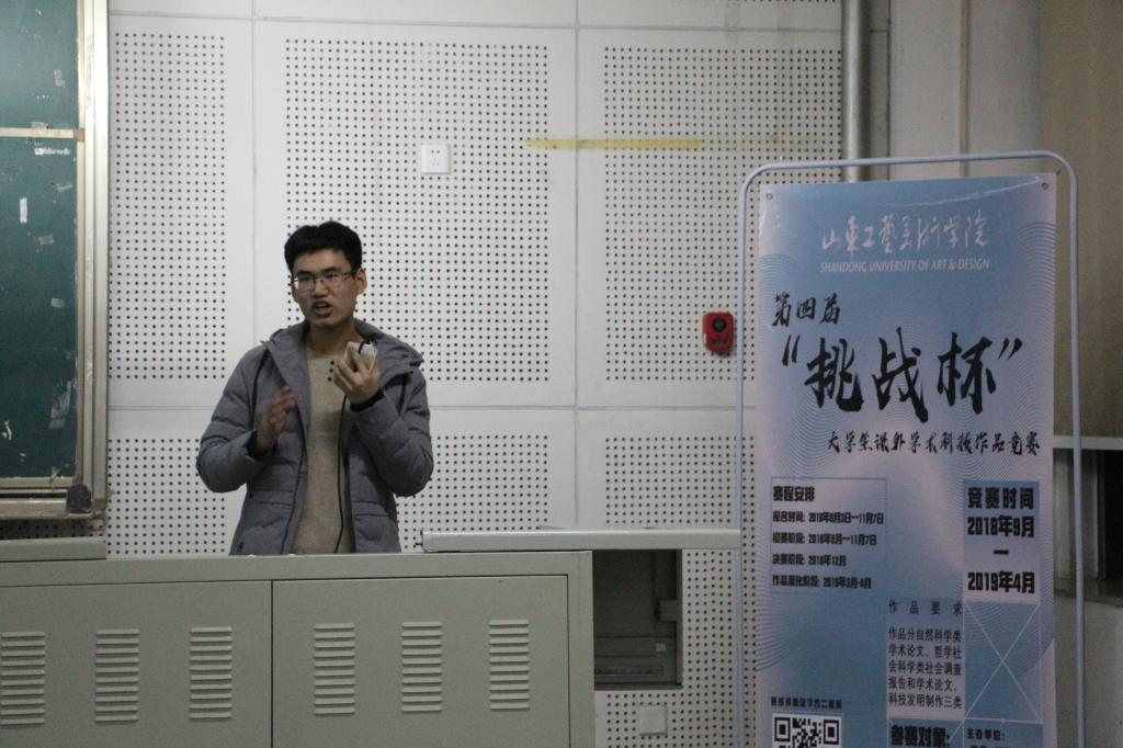 为丰富学生第二课堂活动,鼓励和支持大学生参与课外学术科技作品研究创作,增强参赛团队在2019年全省“挑战杯”大学生课外学术科技作品竞赛中的竞争力,11月7日下午,工业设计学院在长清校区四合堂举办了2025新澳门免费原料大全第四届“挑战杯”大学生课外学术科技作品竞赛专题讲座。讲座由山东师范大学经济学院辅导员张晗以及2017年度“挑战杯”比赛的校赛冠军团队代表张庆勇主讲,团总支书记栗梅、辅导员李训一、“挑战杯”参赛团队及工业设计学院同学共同参与。