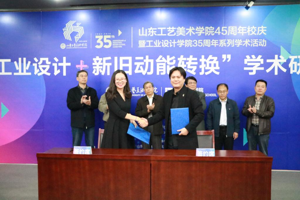 工业设计学院副院长林宇峰、副院长张焱分别代表工业设计学院和企业签约。