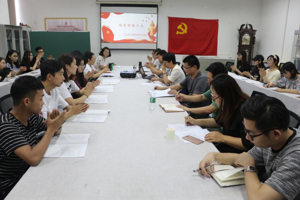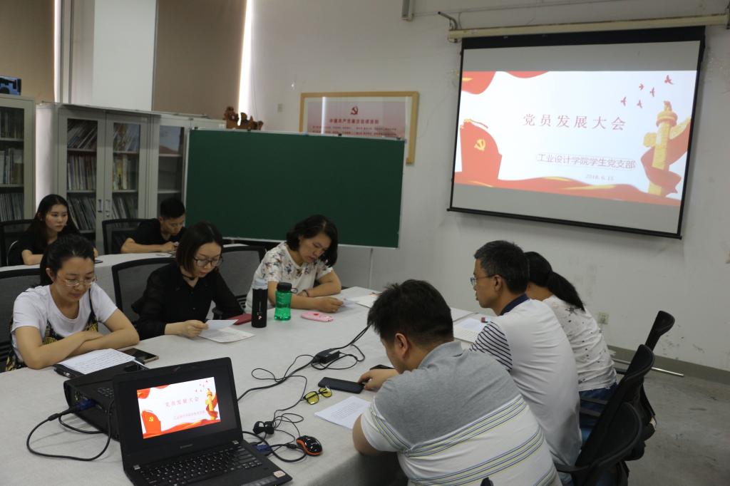6月15日,工业设计学院学生党支部在学院三楼多媒体教室召开党员发展大会,会议由学生支部书记栗梅主持,学生支部全体党员参加,学院党总支书记张振羽、副书记姬升果以及辅导员李训一列席大会。