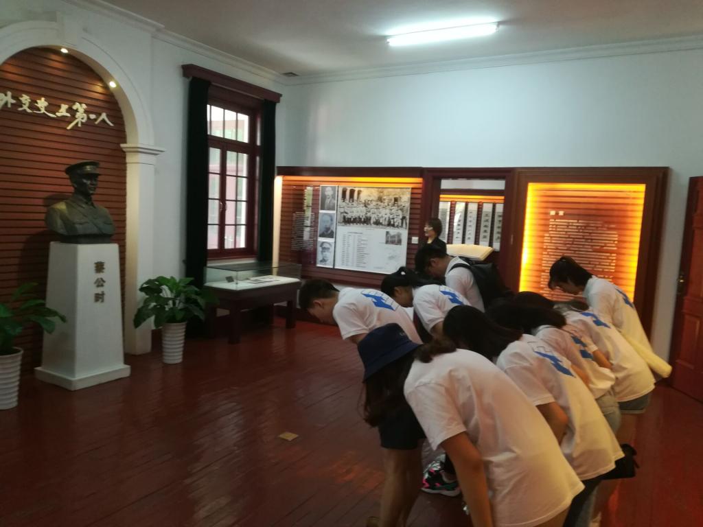 5月29日上午, 2015级入党积极分子组织参观了蔡公时纪念馆。到达蔡公时纪念馆后,入党积极分子首先来到烈士蔡公时雕像前进行鞠躬礼,整个过程入党积极分子表情严肃,深情缅怀革命先烈。随后大家在讲解员的带领下井然有序地参观了纪念馆,对革命先烈的光荣事迹进行了更深的了解,当日军以保护侨民为由出兵济南时,蔡公时烈士面对武力威胁,大义凛然,虽被日寇施以挖眼割鼻之刑,毅然舍生取义。蔡公时烈士的事迹深深地感染了每一位入党积极分子,无不动容,对蔡公时烈士有了更进一步的认识。此次党课实践活动朴素庄严,严肃有序,不仅参观了纪念馆,缅怀了烈士,更是一堂生动深刻的爱国主义教育课。