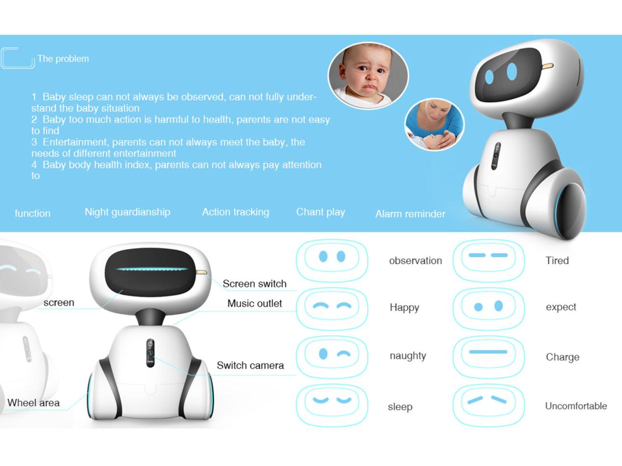 徐志翔同学设计作品“儿童陪伴机器人”在付志伟和王奇光老师的指导下,以“智能家居,连接城市--城市和公民的愿景”为设计创意出发点,结合机器人与智能手环技术,全方位掌握儿童睡眠情况,对儿童的行动轨迹跟踪记录,在幼教、娱乐方面培养儿童的兴趣爱好,对室内的灯具和温度进行智能调节,提供优质的成长环境。