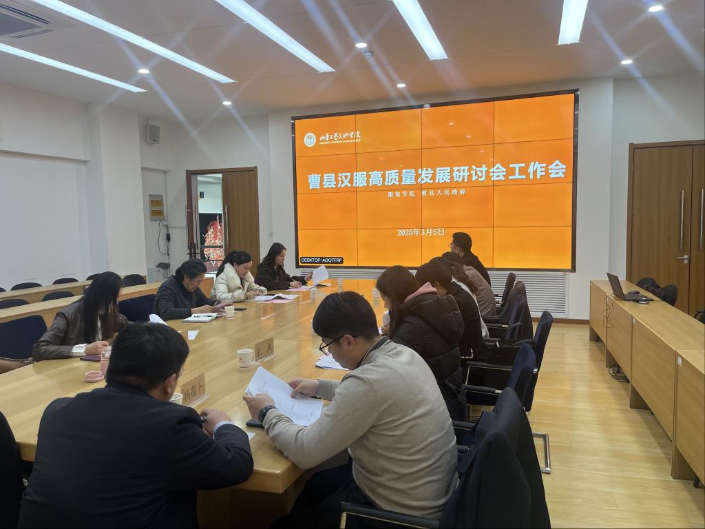 3月5日下午,“曹县汉服高质量发展研讨会”推进会于第三会议室成功举办。曹县县委常委、县委宣传部长王倩,曹县县委宣传部副部长、文明办主任张美玉,曹县电商服务中心主任张龙飞,曹县县委宣传部办公室主任杨蕴卜,菏泽市广播电视台新媒体中心主任王硕,菏泽市广播电视台新媒体中心运营部主任孔庆以及服装学院相关工作人员出席了本次会议,会议由服装学院院长李杰主持。
