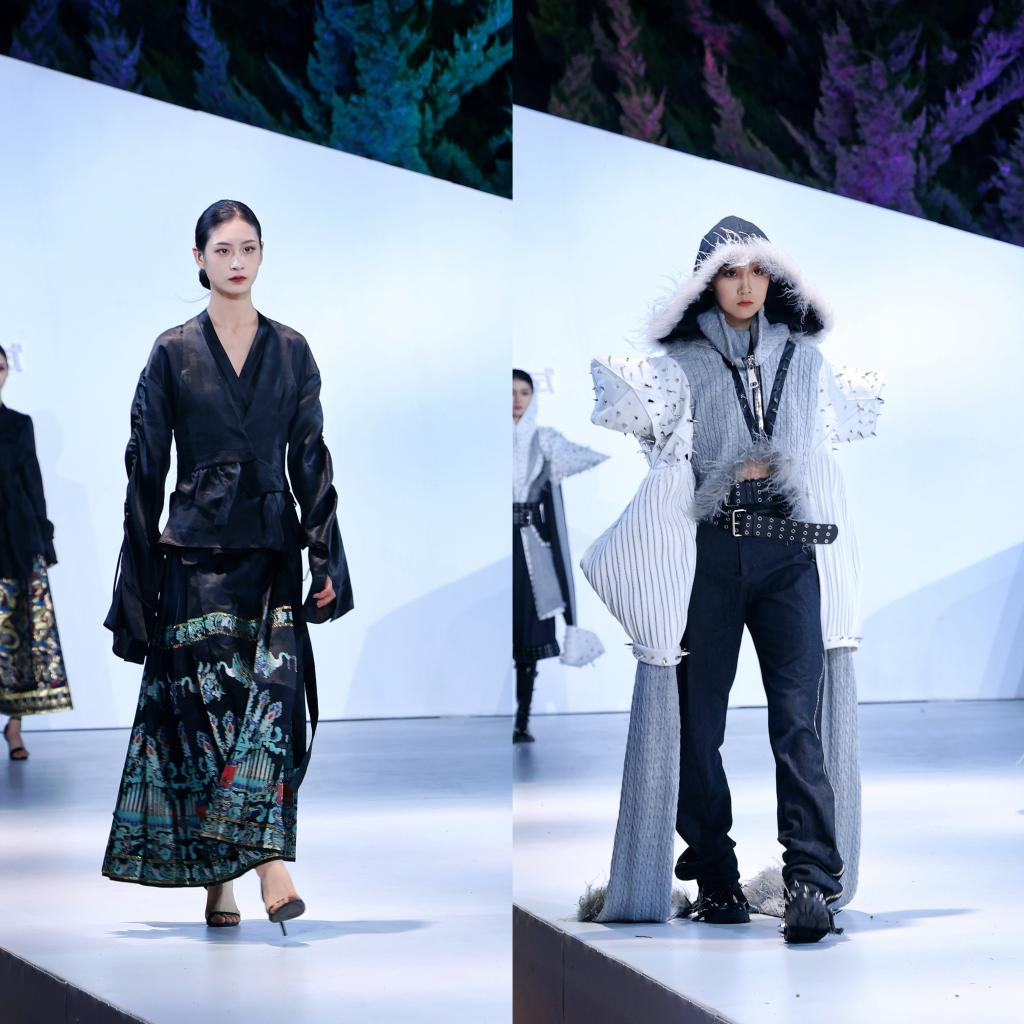 静态展分为传统服饰创新、创意时尚、可持续时尚三个板块,共计50套作品,设计作品兼顾艺术与实用,审美与功能并存,展现了毕业生的创意与才华,他们用扎实的专业基础和创新思维,将中国传统服饰文化、可持续时尚等内涵融入到设计作品中。