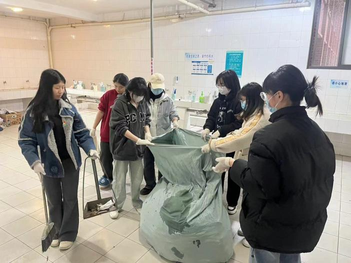 活动中,全体学生党员佩戴党徽,亮出党员身份,按照划分的卫生区域进行打扫。学生党员们干劲十足,不放过任何一个卫生死角,认真打扫厕所堆放的垃圾、杂物。学生党员以身作则、自觉地将垃圾带下楼,充分发扬不怕苦、不怕累、不怕脏的精神,保持自己宿舍及厕所公共区域的环境卫生整洁,及时做到垃圾清理,与同学们共创美好空间。