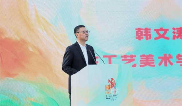 研讨会之前,潘鲁生出席2023曹县首届汉服文化节启动仪式,并与周生宏共同为e裳小镇·曹县数字经济产业园揭牌。韩文涛在启动仪式上致辞。