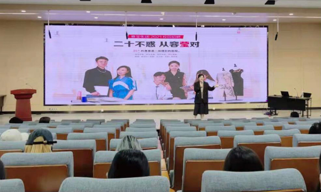 为了满足2021届毕业生就业需求,拓宽就业信息获取渠道,服装学院在4月7日下午两点于阶梯一教室举行雅莹集团招聘宣讲会。服装学院部分学生及毕业生参加了此次活动。服装学院邀请了雅莹集团人事经理李茜。