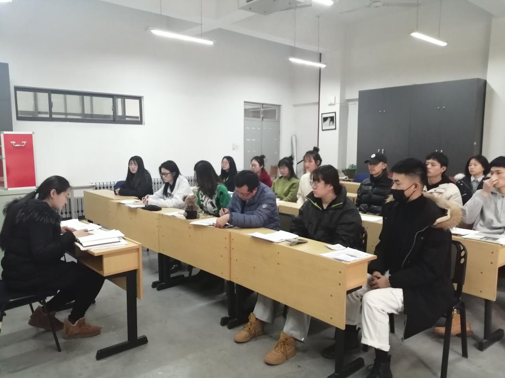 2021年1月4日,服装学院学生党支部在综合楼三楼多媒体教室召开中共预备党员转正大会,研究李俊洁、张露、翟玉磊、李萌、孙嘉淳、杨乐、王卓琳7位同志预备党员转正事宜。本次会议由学生党支部书记王苏主持,党总支副书记王金安及支部党员参加会议。