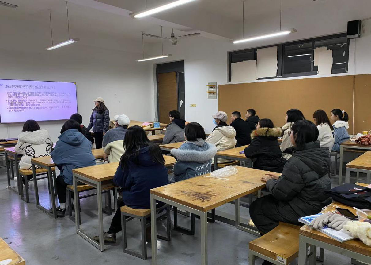 近年来,“校园贷”作为互联网新生事物,颇受在校学生的欢迎。一张身份证,一本学生证,甚至不用本人签字,就能贷到数万元。但也出现了大学生无力偿还而躲债甚至自杀的悲剧。为使学生远离“校园贷”陷阱,树立正确理性的消费观,2020年12月6日,服装学院于教学楼开展了以“拒绝网络贷款 享受纯净校园” 为主题的谨防校园贷班会,旨在加强对同学们的警示教育,提升同学们的防范能力。