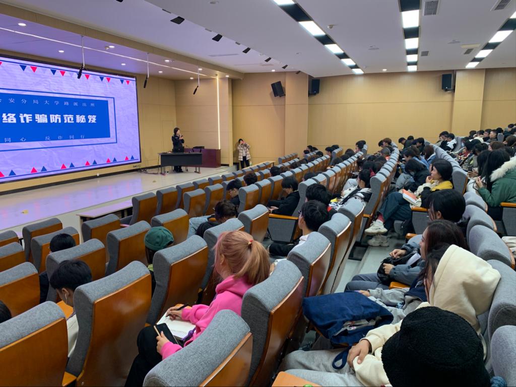为增强新生对电信网络诈骗的认识,提升新生的识骗、防骗能力,维护校园安全稳定,11月4日下午,服装学院邀请长清区大学路派出所民警张立霞在长清校区阶梯教室开展防骗安全讲座。讲座以“警校同心,反诈同行”为主题,服装学院辅导员王苏及20级全体新生参加了讲座。