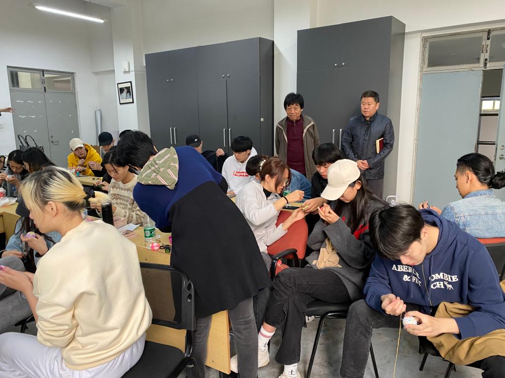 雷家民和张利听取杨静蕊老师的《传统服饰工艺Ⅰ》,《传统服饰工艺Ⅰ》是服装表演专业德育与传统文化教育课程群必修课程,是德育、传统文化教育与专业教育相结合的示范课程。本课程通过讲授传统服饰工艺概要、专题传统服饰工艺基本技法以及材料、使用工具等内容,培养学生将中华优秀传统文化的人文精神融入到专业基础和专业课程中,坚守优秀传统文化育人的“养成教育”。