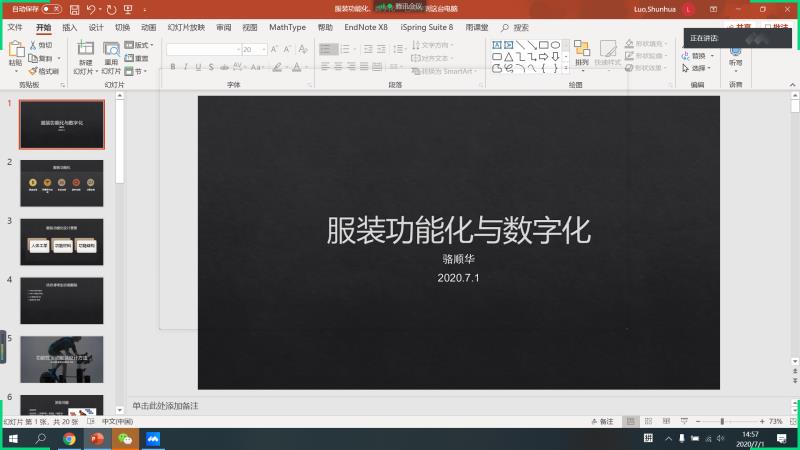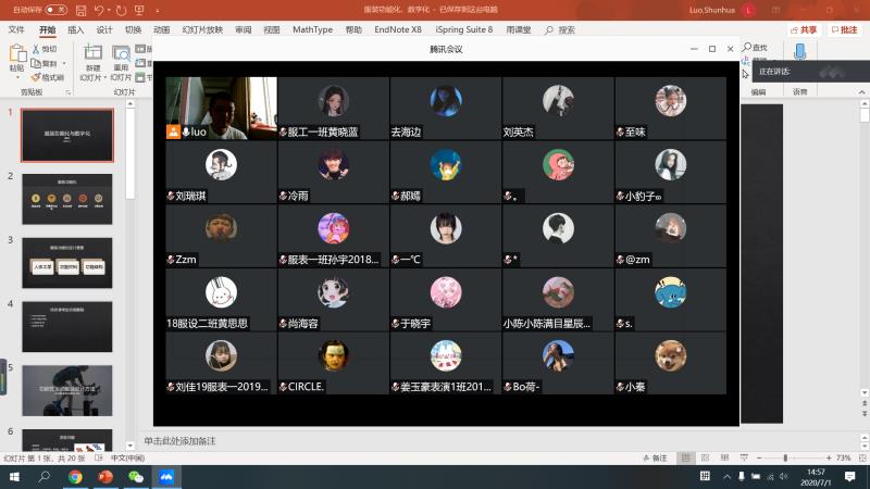 为了扩展学生的专业视野与发展趋势,7月1日下午,服装学院工程教研室主任、副教授骆顺华利用腾讯会议在线做了服装业的发展趋势——服装功能化与数字化的报告,服装学院近180名学生收听了报告。