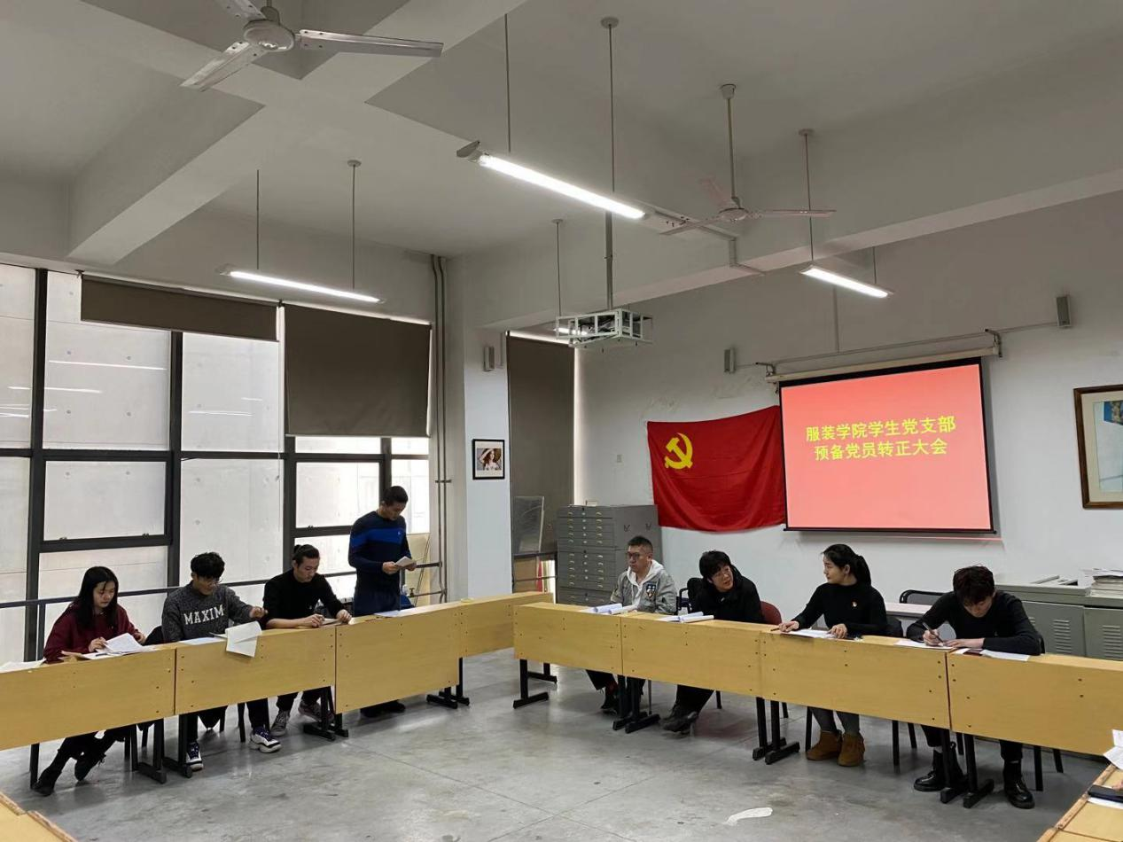 2019年12月26日上午,服装学院学生党支部在服装学院多媒体教室召开预备党员转正大会,讨论预备党员李雅琪、宗政、肖雨、付正刚同志的转正问题。会议由学生党支部书记王苏主持,党总支副书记王金安及支部党员参加会议,党总支书记张利列席会议。