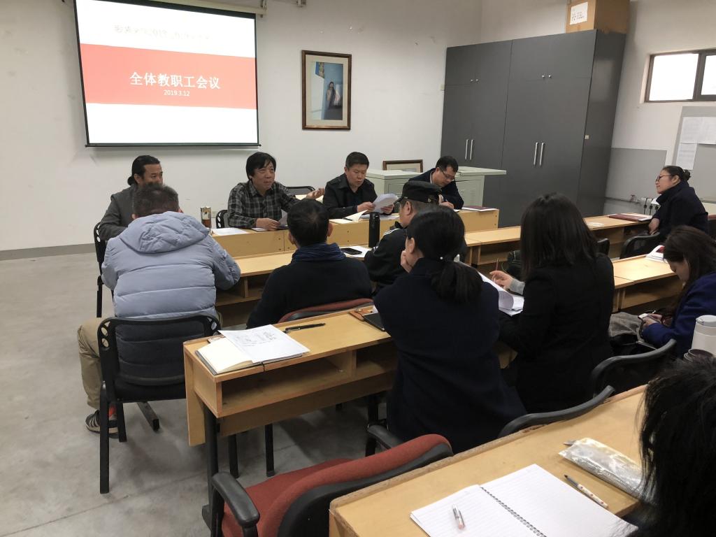 3月12日下午,服装学院在长清校区服装多媒体教室召开全体教职工会议。服装学院院长雷家民、党总支书记张利、副院长李杰、副书记王金安,服装学院全体老师参加了会议。张利主持会议。 张利带领大家一起学习《中共中央关于加强党的政治建设的意见》;在前段时间学习落实的基础上,再次强调了“强学习,提站位,深反思,促整改”专题教育活动的相关内容,重点学习了《新时代高校教师职业行为十项准则》,《高校考试招生管理工作八项基本要求》等相关文件,他要求学院全体教职工要认真学习上述文件精神,加强政治理论学习,提高思想政治觉悟,把学习和教学实际结合起来,真正做到学懂、弄通、悟透、做实,营造良好教书育人环境。 雷家民安排部署了新学期教学、行政工作,本学期将重点做好以下几项工作:一、第十三届全国美术作品展览将于2019年举办,艺术设计展区落户我校,学校对本次美展创作参展十分重视,各位老师要积极参与,把本次全国美展当做一次展示教学成果和创作水平的平台,促进教学和创作的契机,仔细研究相关展区作品征集细则,制定工作方案,用心创作精品。二、严格按照学校毕业设计中期检查和艺术设计博览会相关工作的安排,要求毕业设计导师严格按照日程安排有序推进毕业设计工作。三、以课程作品展促进教学。要求教师在外出写生结束后,举办写生作品展,通过作品展提高教学质量,为不同专业师生之间的艺术交流搭建良好平台。四、继续加强教学管理,做好人才培养方案及学分制等工作。五、加强专业建设,尤其是借助教育服务新旧动能转换专业对接产业的契机,鼓励相关专业积极申报科研项目,促进专业建设。 最后,李杰对学分制改革、加强科研水平、第十三届全国美术展览、毕业设计论文创作等方面进行了补充说明与安排。