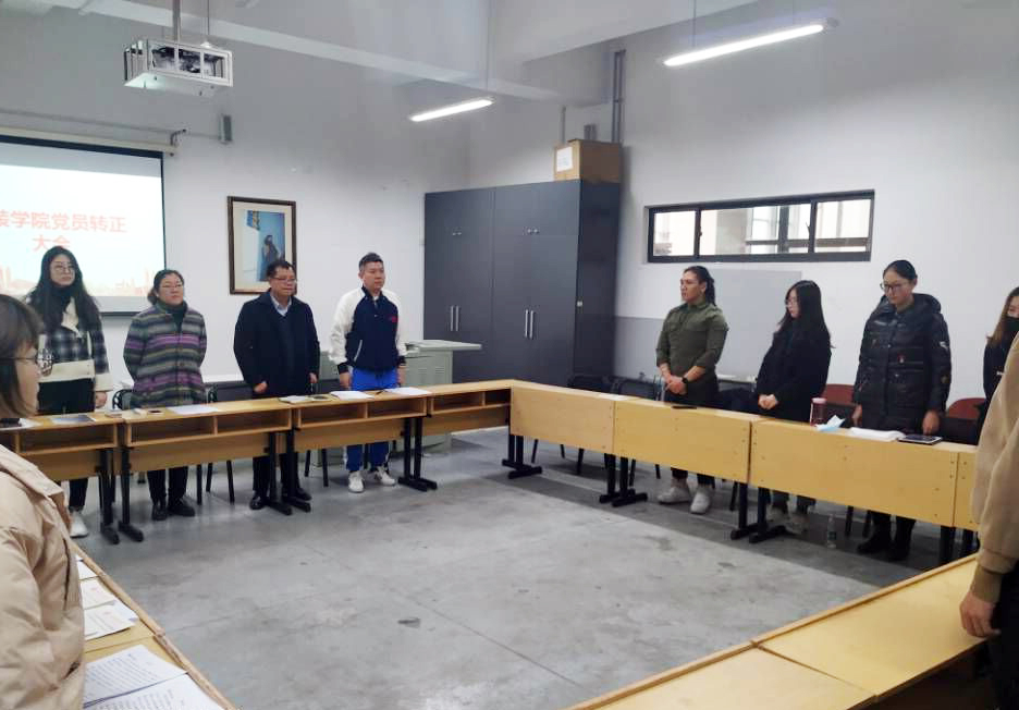 12月25日,服装学院学生党支部在多媒体会议室召开预备党员转正大会,研究周闰红、商婧怡、生汉超、齐广帅、衣俊儒五位同志预备党员转正事宜。服装学院党总支副书记王金安、学生党支部书记徐珊珊、团总支书记于浩和服装学院学生支部全体党员参加。 根据组织发展程序,首先,申请人周闰红、商婧怡、生汉超、齐广帅、衣俊儒依次向支部大会宣读转正申请书,向党组织如实汇报预备期间自己在思想、生活、学习等各方面的综合情况,并就自己在预备期内思想的进步和工作的表现做了深刻全面的总结。接着,入党介绍人分别对五名预备党员的表现和培养情况做了介绍。组织委员李雅琪代表支委会向大会汇报对入党申请人的培养、教育、考察情况,宣读政审报告,与会党员充分发表意见。大会通过无记名投票方式进行了表决,一致同意周闰红等五名同志按期转正。随后,李雅琪代表支委会宣读决议,大会认为周闰红等五位同志自转为预备党员以来,努力以实际行动争取早日成为正式党员,不断提高自己的思想觉悟,对党的认识明确,入党动机端正,已具备党员条件,同意接受其为正式中共党员。 最后,王金安做总结发言,他首先对五名预备党员表示祝贺和欢迎,并希望周闰红等五位同志加入党组织后,认真履行党员义务,做一名合格的共产党员。