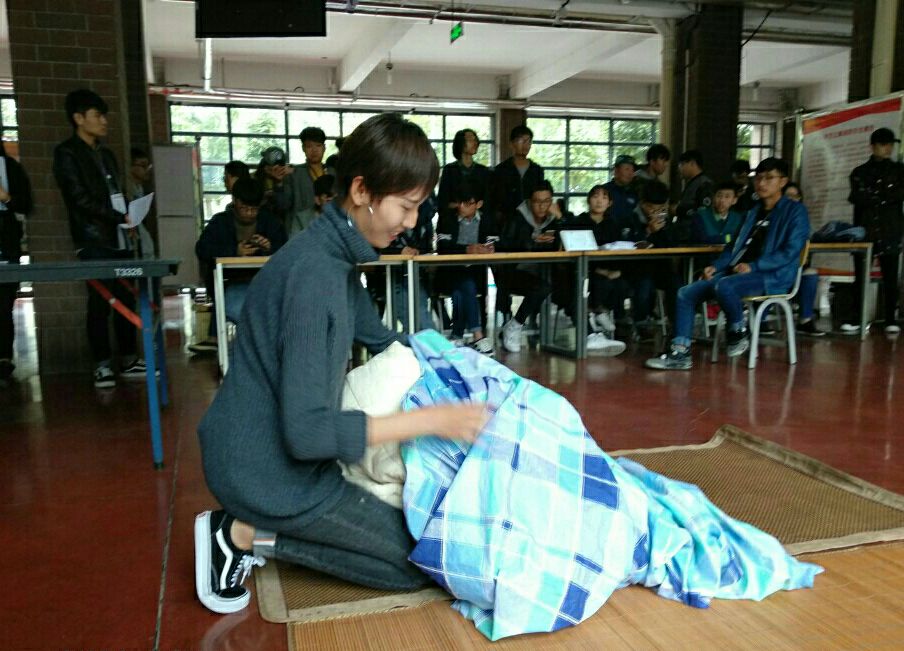 内务整理状况是考验学生自身素质的重要依据,一名优秀的大学生不仅能上得了学习的战场,也要扫得了“屋子”。比赛要求床单平整,被子要叠放方正,棱角分明,整体美观。比赛一开始,服装学院的同学们不甘落后,铺被、叠被、整理棱角的动作迅速而娴熟,经过压、叠、掏、扣、整等一系列步骤后,原本软塌塌的被子,便被整理成了规整标准的“豆腐块”。尽管比拼紧张激烈,但同学仍然热情高涨。最终,服装学院在这次内务大比拼中取得了第二名的好成绩。