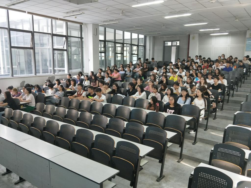 2017年9月10日上午10:15-11:45,服装学院在四合堂举办入学教育系列讲座。本次讲座为同学们讲解学校学生奖励与资助政策,由于浩老师主讲,服装学院2017级全体新生参与本次讲座。