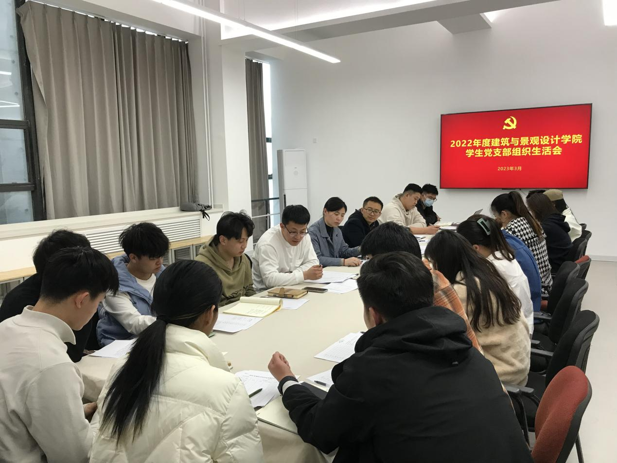 根据党委组织部要求、经党总支批准,建筑与景观设计学院学生第一、第二党支部于3月14日下午组织召开了2022年度组织生活会。本次会议分别由学生第一党支部韩晓旭、第二党支部书记陈铁主持,党总支副书记姜华列席指导,辅导员田亚洲、全体党员参加。