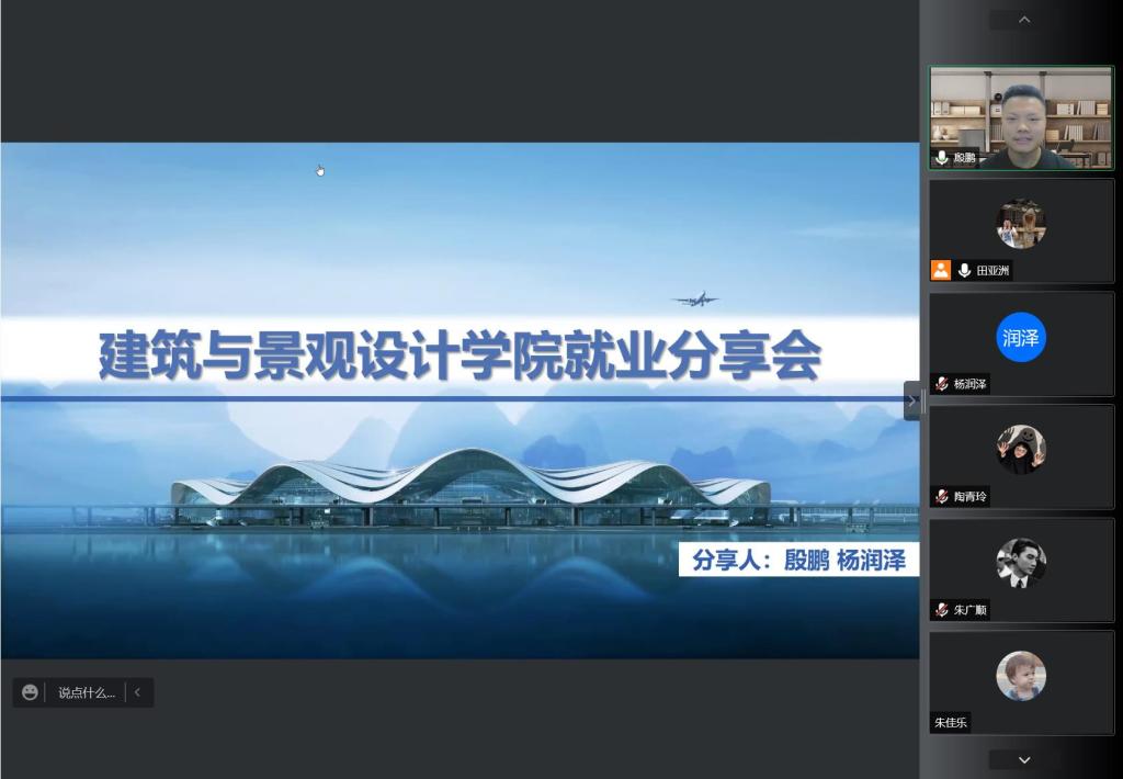 为迎接党的二十大胜利召开,帮助我院学生做好职业发展与规划,10月6日,建筑与景观设计学院举办线上就业经验分享会。本次活动由2021届毕业生殷鹏、2022届毕业生杨润泽担任主讲,2023届毕业生辅导员田亚洲主持,2023届和2024届毕业生参与。