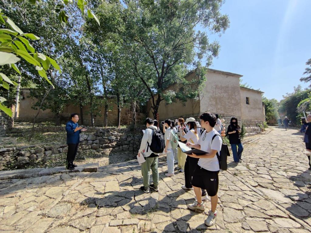 调研中,师生在洪范池镇政府与镇领导进行座谈交流,详细了解了洪范池镇的人文历史、生态环境、发展规划等情况。随后,在镇领导的陪同下,师生一行前往南崖村、黄崖村、丁泉村等地,对村庄布局、民居建筑、产业情况等方面进行了实地调研。最后,师生党员共同参观了洪范池镇红色文化广场和革命烈士秦培伦故居,听老党员讲述了秦培伦的英雄事迹,接受了一场深刻的红色教育和精神洗礼。