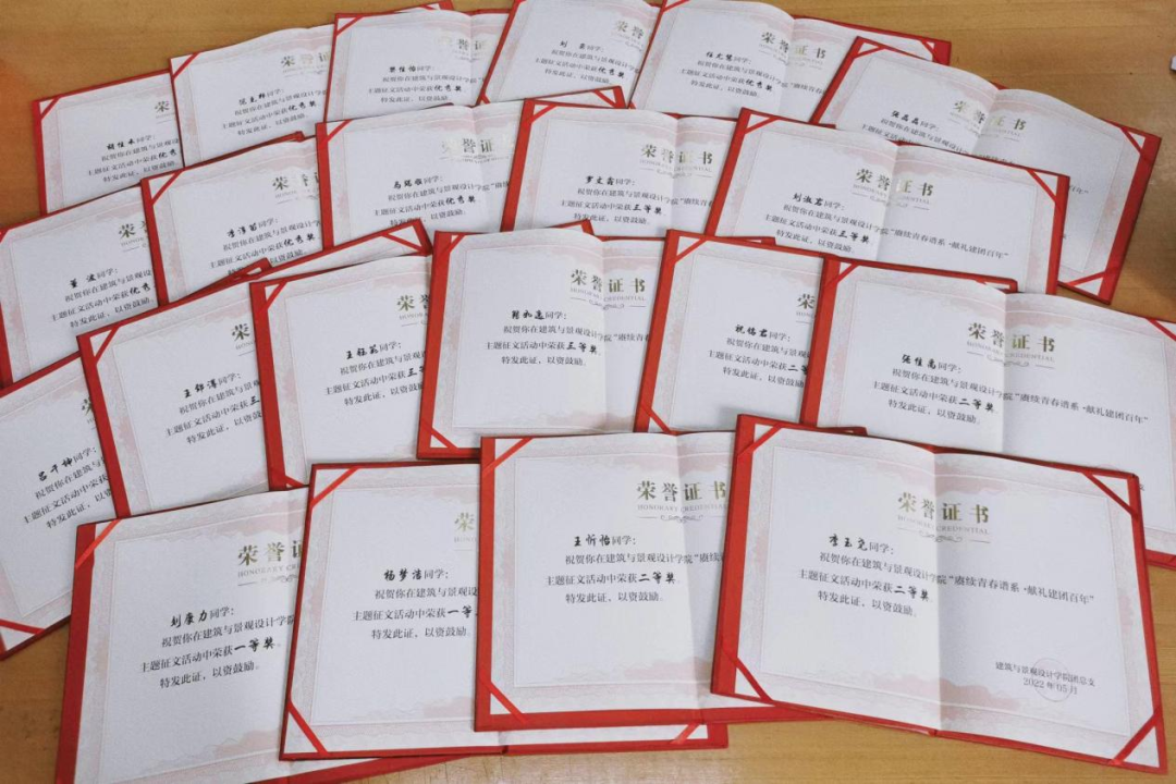 5月27日,建筑与景观设计学院团总支开展“赓续青春谱系·献礼建团百年”的主题征文活动。活动发布后,建筑学子踊跃参与,积极投稿,共收集稿件40余份。