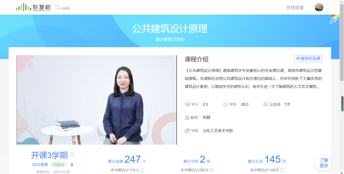 张静老师打造的《公共建筑设计原理》课程,拥有完整的线上授课课程体系,是线上教学的典型案例。