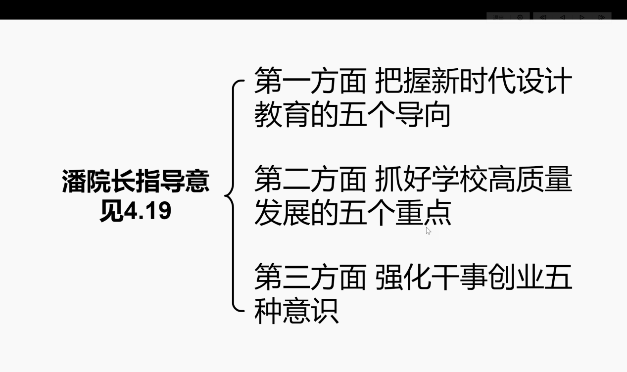 李文华指出校领导的讲话为学院的工作给出了明确的指导意见,指出了今后的努力和发展方向。全体教职工要认真梳理潘院长讲话精神,真正领会“五个导向”的指导意义,让设计学科更好的服务于国家的发展战略;真正把握“五个重点”的引领作用,早日实现全面高质量发展的总目标;真正领会“五个意识”是干事创业的关键,树立新理念,拓展新思路,创造新业绩。
