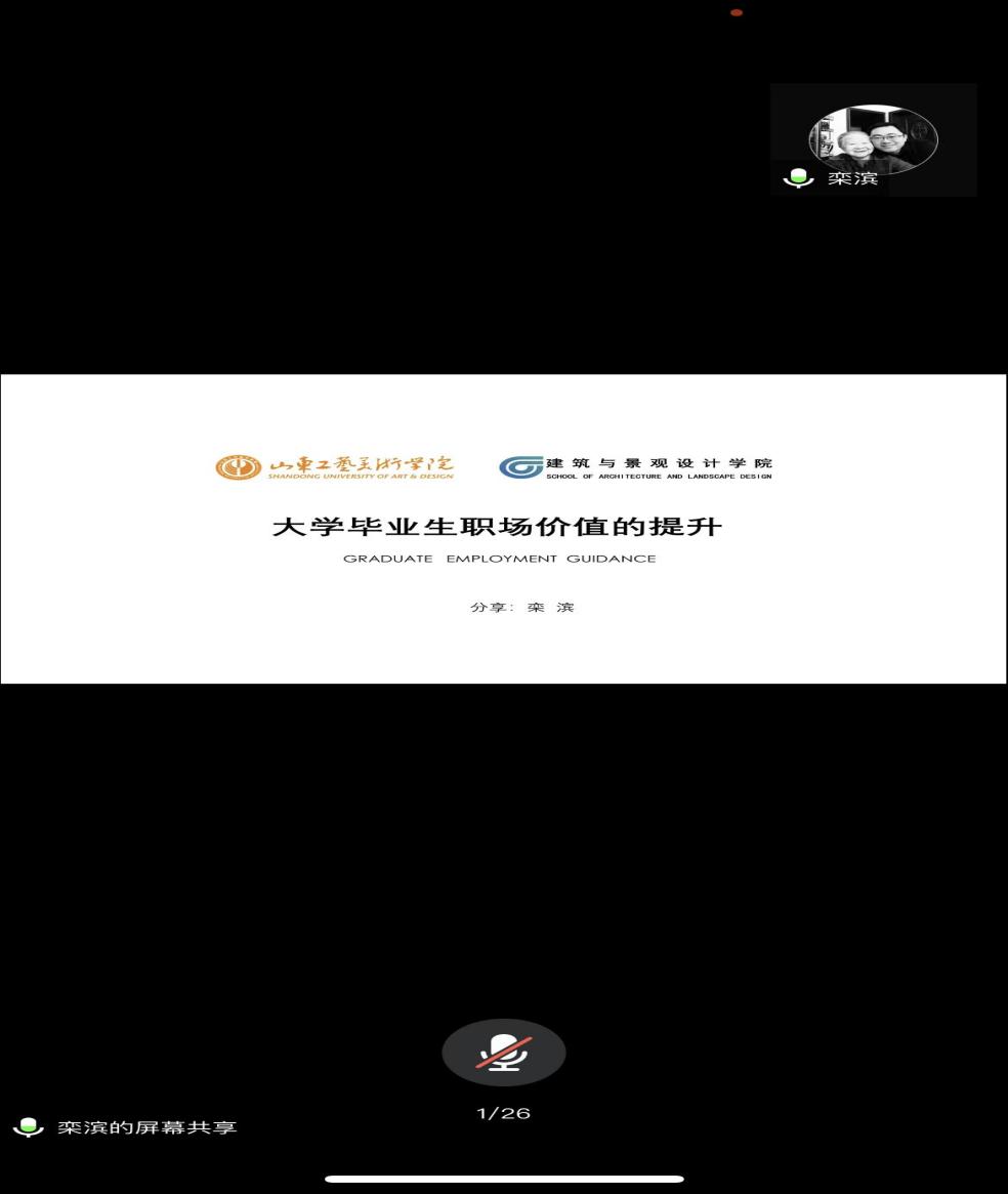 为了提升大学毕业生的求职技能,明确大学毕业生的求职方向,建筑与景观设计学院于4月18日下午举办了“大学毕业生职场价值的提升”专题线上讲座。讲座通过腾讯会议的方式进行,由学院党总支副书记姜华主持,学院教师、山东装饰协会会长、ACE赫宸设计有限公司创意总监栾滨老师担任主讲,副院长王健、2022届毕业生辅导员褚丁庆和2022届全体毕业生参加了此次讲座。