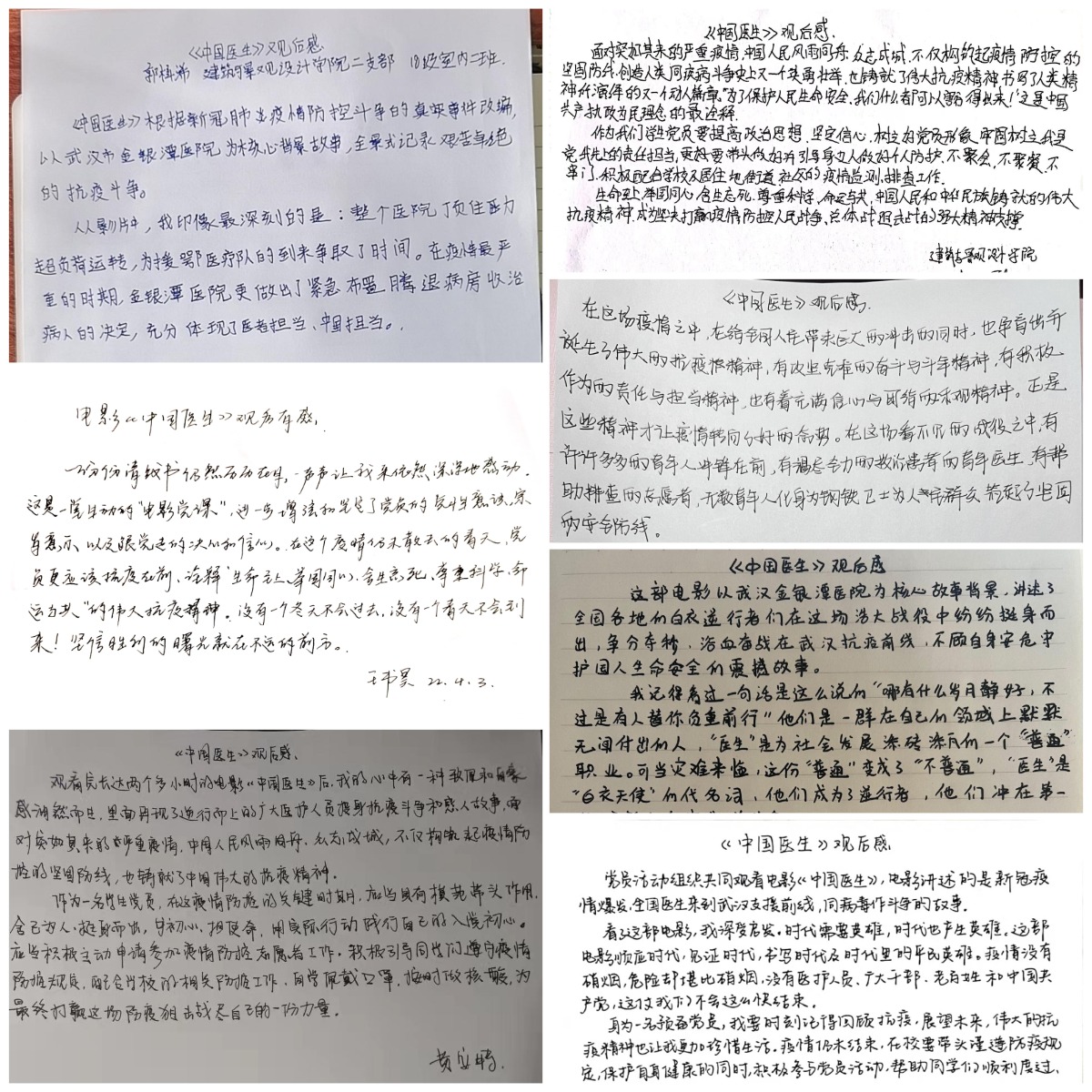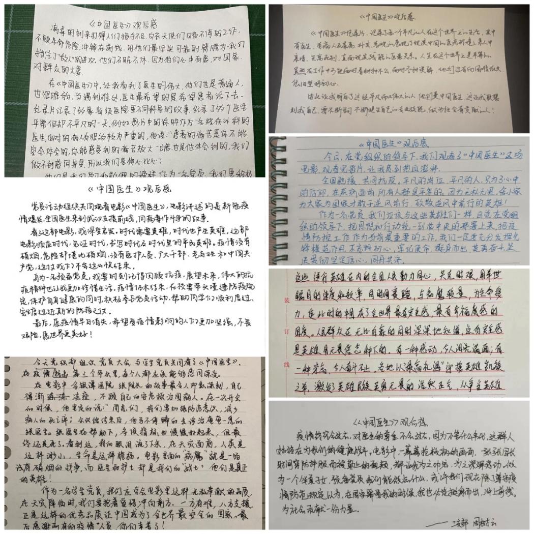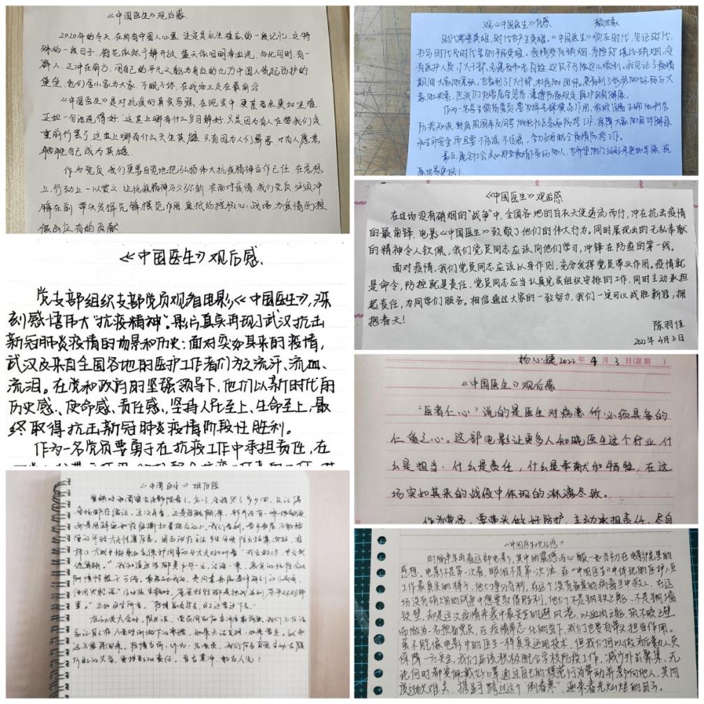 活动结束后,同学们都主动提交了电影观后感,大家纷纷感慨,从影片中感受到了那段时间的紧迫、压力,为这些战斗在武汉一线的中国医护人员点赞,为祖国的团结和伟大点赞。大家深深被“生命至上、举国同心、舍生忘死、尊重科学、命运与共”的伟大抗疫精神所感动、所震撼,表示要学习弘扬伟大抗疫精神,将这种精神转化为学习动力和实际行动。