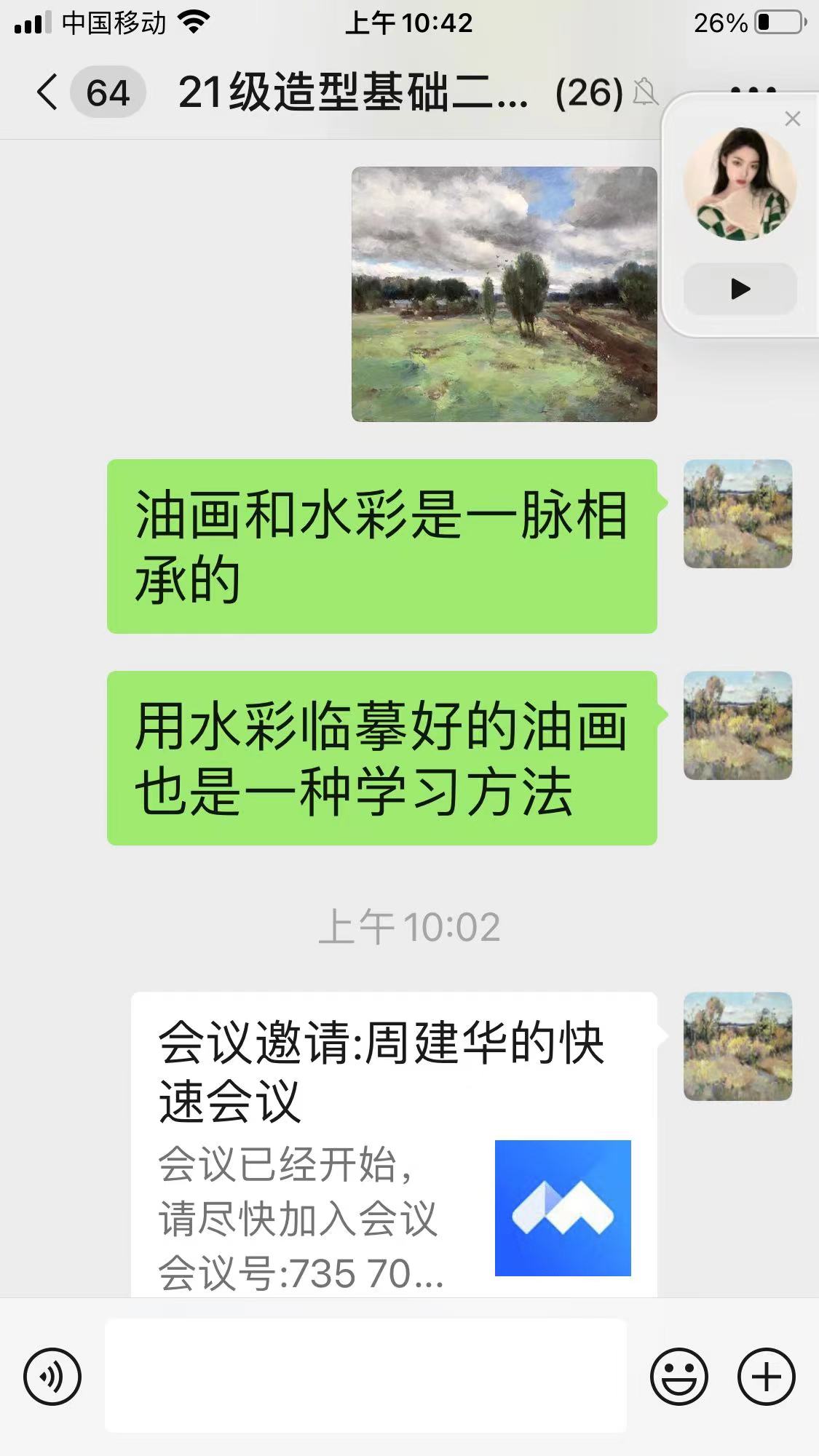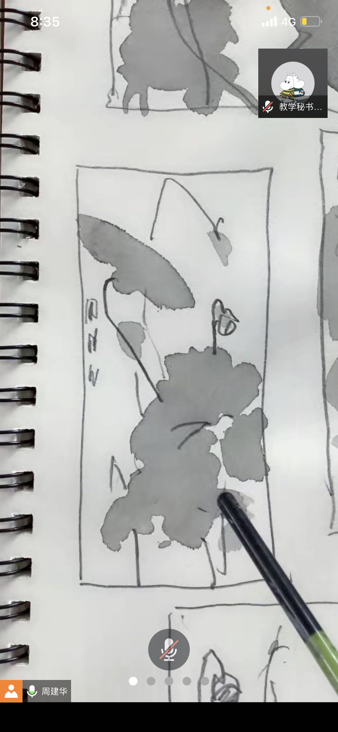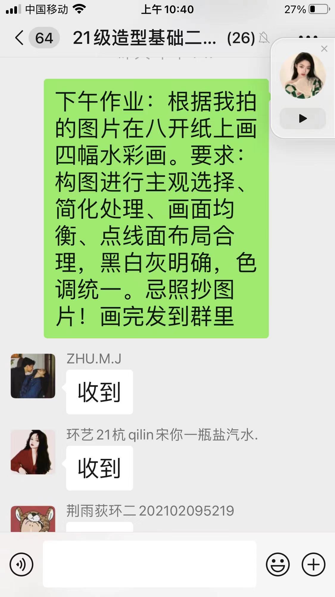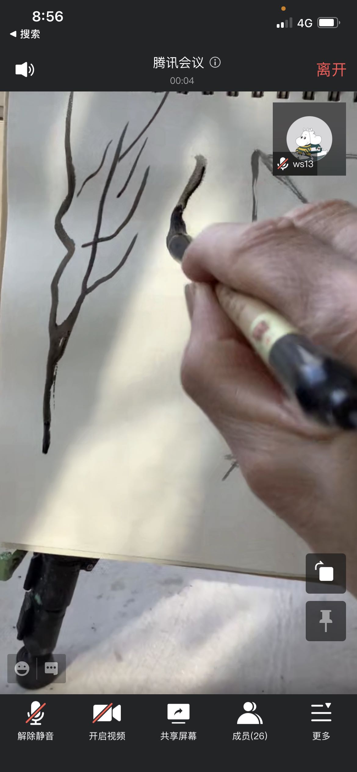 绘画是实践型教学,网上授课、做范画、辅导相对面授很不便。绘画课具体怎么上,周老师为我们提供很好的教学范本。周老师强调网上授课对于讲评作业、欣赏作品,尤其调动资料方面还是有其优势的,学生们的学习热情很高。
