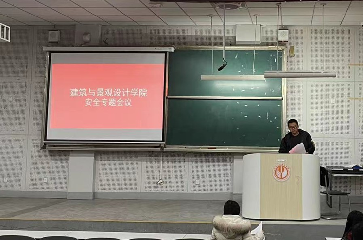 为进一步增强学生安全意识,提高自我管理能力,深化平安校园建设,维护校园和谐稳定。2021 年11月23日下午,建筑与景观设计学院召开安全专题会议,会议由学院团总支副书记褚丁庆、辅导员陈铁、韩晓旭主持,各年级主要学生干部、宿舍舍长、宿舍心灵护航员参加。