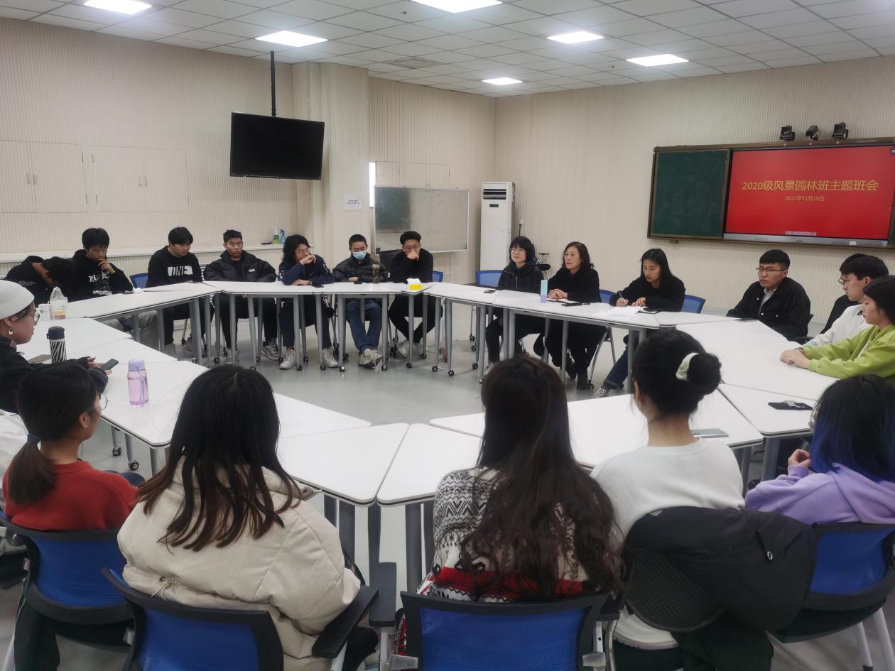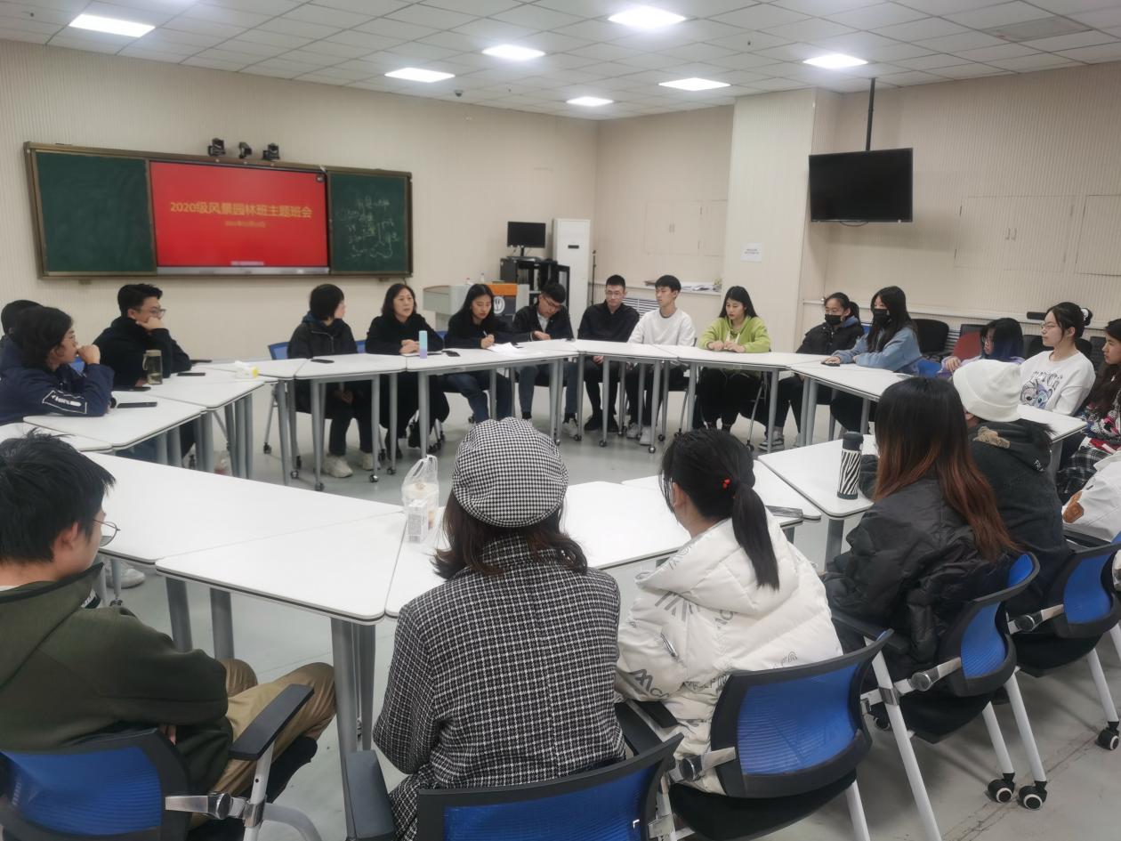 建筑与景观设计学院团总支副书记褚丁庆、辅导员韩晓旭、2020级风景园林班全体同学参与座谈交流。
