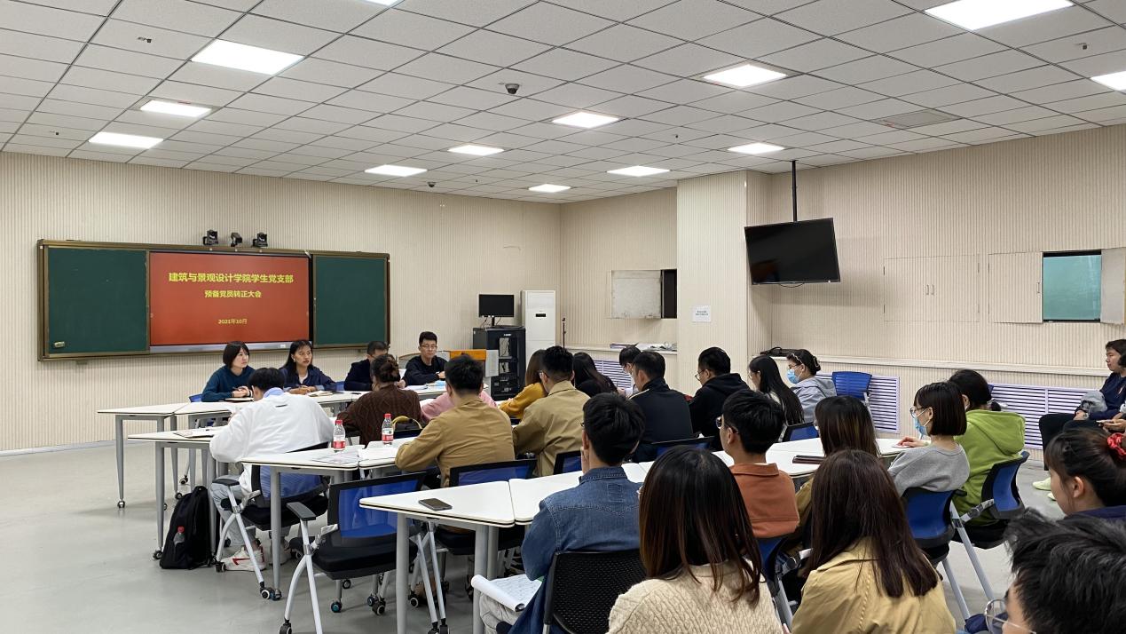 2021年10月16日,建筑与景观设计学院学生党支部在学院智慧教室召开预备党员转正大会。会议由学院学生第二党支部书记陈铁主持,学生第一党支部书记褚丁庆、辅导员韩晓旭、田亚洲及全体学生党员参加。