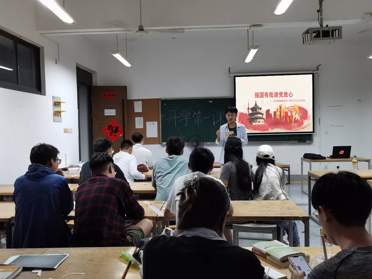 29号晚自习期间,各班组织开展班会,辅导员到现场进行指导并上好开学第一课,学习习近平总书记“七一”重要讲话精神,开展了题为“强国有我 请党放心”的主题宣讲活动。各班团支书带领同学们回顾了中国共产党百年光辉历程,以及在这个历程中形成的坚持真理、坚守理想、践行初心、担当使命、不怕牺牲、英勇斗争、对党忠诚、不负人民伟大的建党精神。辅导员老师们做了总结,总书记在“七一”重要讲话中高度肯定了青年在实现中华民族伟大复兴中的作用,并对新时代中国青年提出殷切期望。作为新时代中国青年,大家要认真学习领会习近平总书记重要讲话精神,矢志不渝为实现中华民族伟大复兴而奋斗。