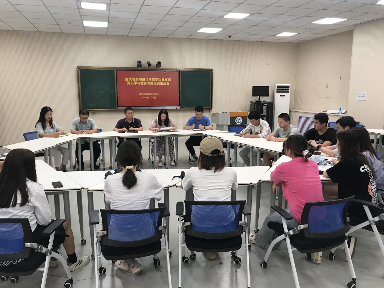 7月8日,建筑与景观设计学院学生第一、第二党支部于学院智慧教室组织召开党史学习教育专题组织生活会。本次会议分别由学生第一党支部书记褚丁庆、学生第二党支部书记陈铁主持,党总支书记张东深列席指导会议。