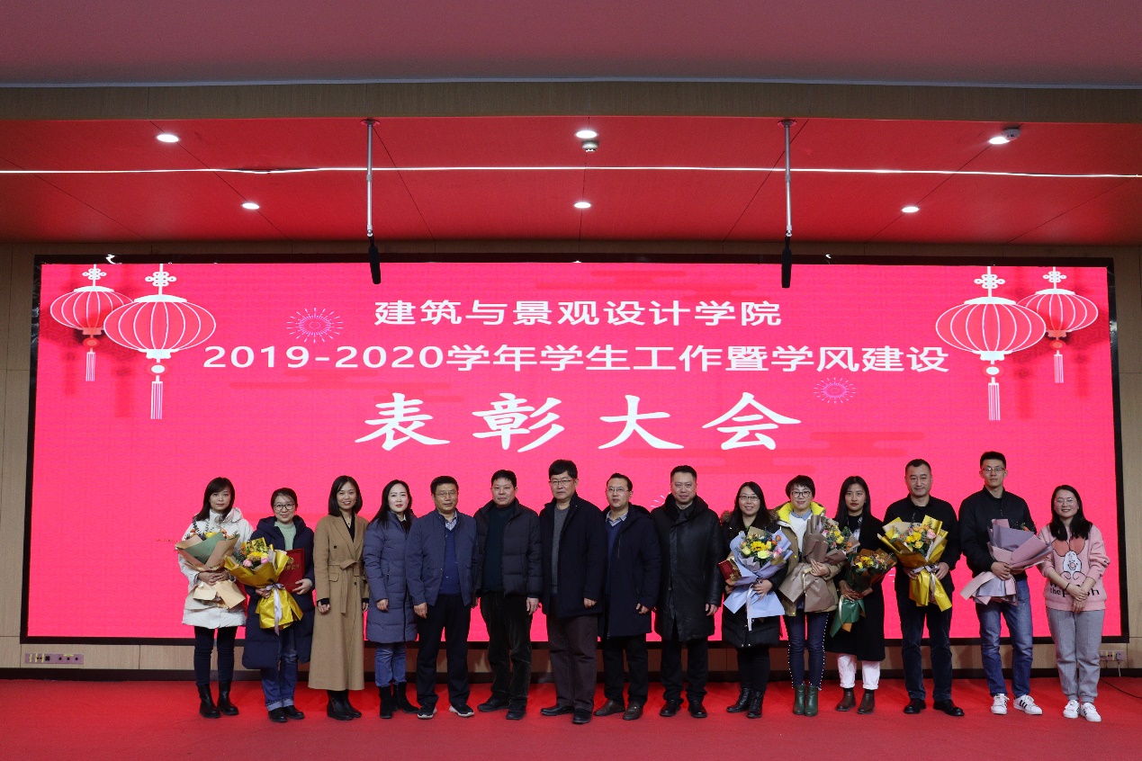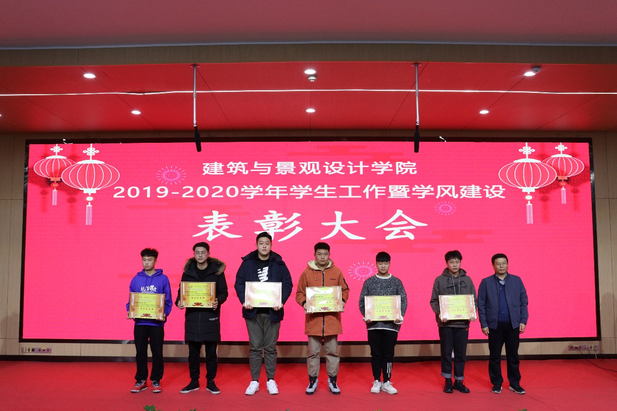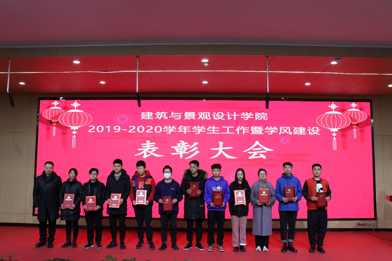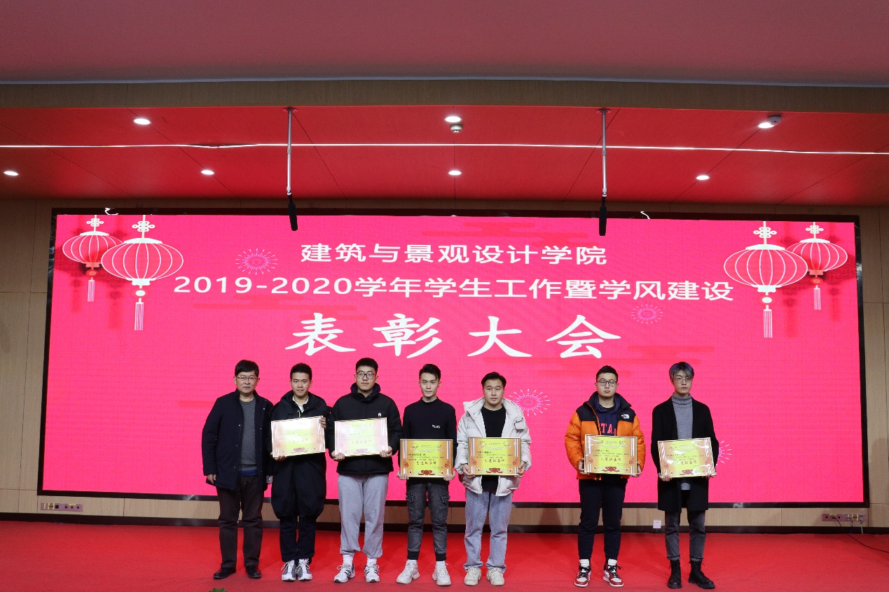 为深入学习贯彻习近平新时代中国特色社会主义思想,积极贯彻党的十九届五中全会精神,培育良好的院风和学风,鼓励和引导学生努力做到有理想、有追求、有担当、有作为,帮助学生树立自信,推动学院学生工作更好的发展,建筑与景观设计学院于12月23日下午在阶梯一教室召开2019-2020学年学生工作暨学风建设表彰大会。学校党委委员、组织部长许磊、建筑与景观设计学院院长邵力民、党总支书记张东深、副书记娄彦、副院长沙重龙、学生处资助管理中心主任王宁、团委社会实践部部长朱冉冉和建筑与景观设计学院党员班主任代表作为颁奖嘉宾应邀参加了大会。大会由建筑与景观设计学院团总支副书记褚丁庆主持。