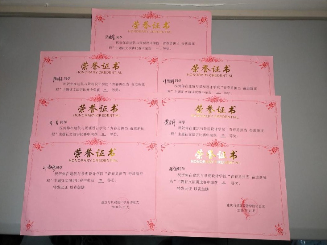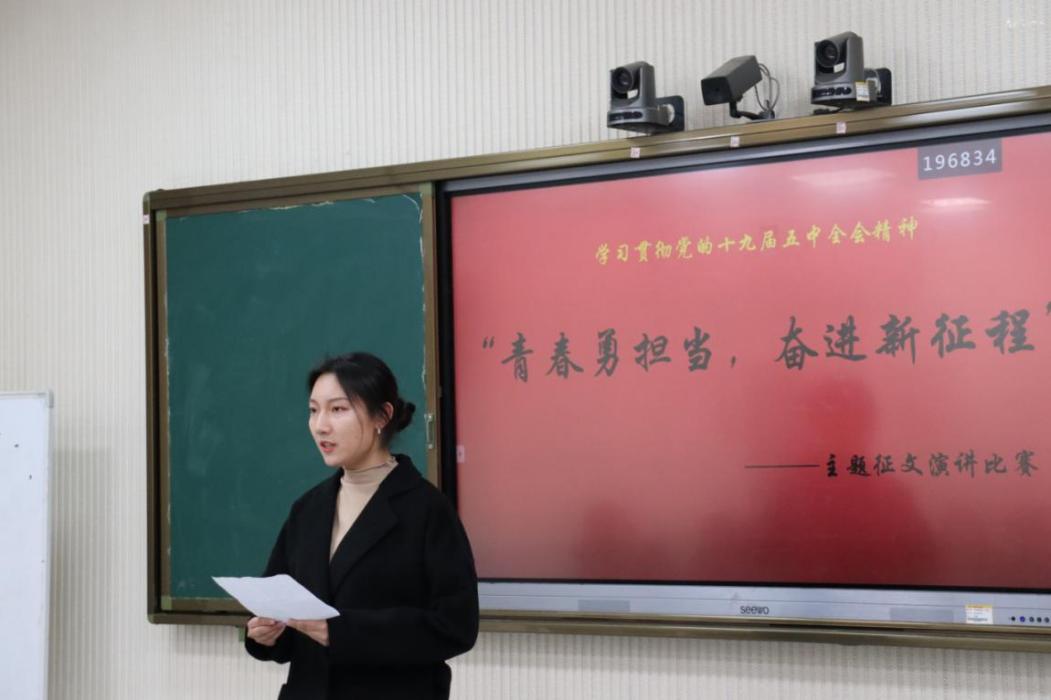 为进一步深入学习宣传贯彻党的十九届五中全会精神,掀起我院青年团员学习全会精神的热潮,11月24日晚,建筑与景观设计学院团总支于智慧教室以“青春勇担当,奋进新征程”为主题举办征文演讲比赛。