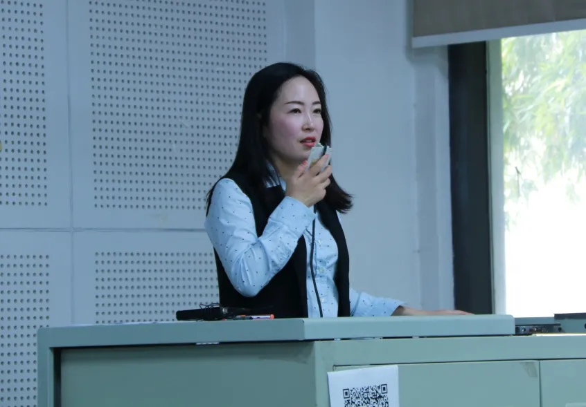 随后,教师代表温莹蕾老师发言,希望新生们进入大学首先要学会转化,学会主动学习;同时要求他们提高自理能力,能够独立生活;他希望新生们在四年或五年之后能够学有所成走出校门。