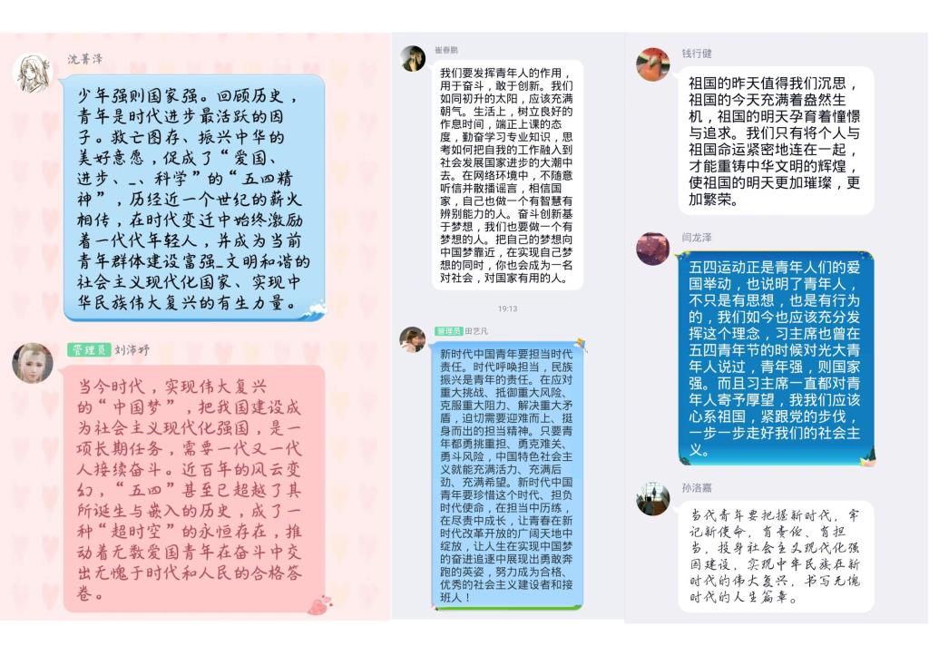 5月5日,建筑与景观设计学院团总支又组织开展了“五四精神、传承有我”网上主题团日活动,各年级团支部通过观看视频,共上主题团课等形式深入了解五四运动的历史意义和五四精神的时代价值,并就“作为当代青年应如何更好的传承五四精神”这一话题展开讨论。